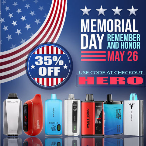 4TH JULY SALE GET ALL DISPOSABLES FOR 35% OFF!! PLUS EVERYONE GET A FREE MYSTERY VAPE !