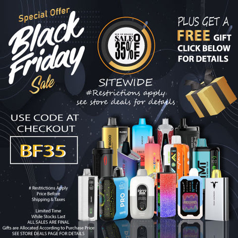 All orders receive 1 FREE Mystery Vape Reward at shipping — ONLY when using code BF35 — while stocks last. All sale items are FINAL.
